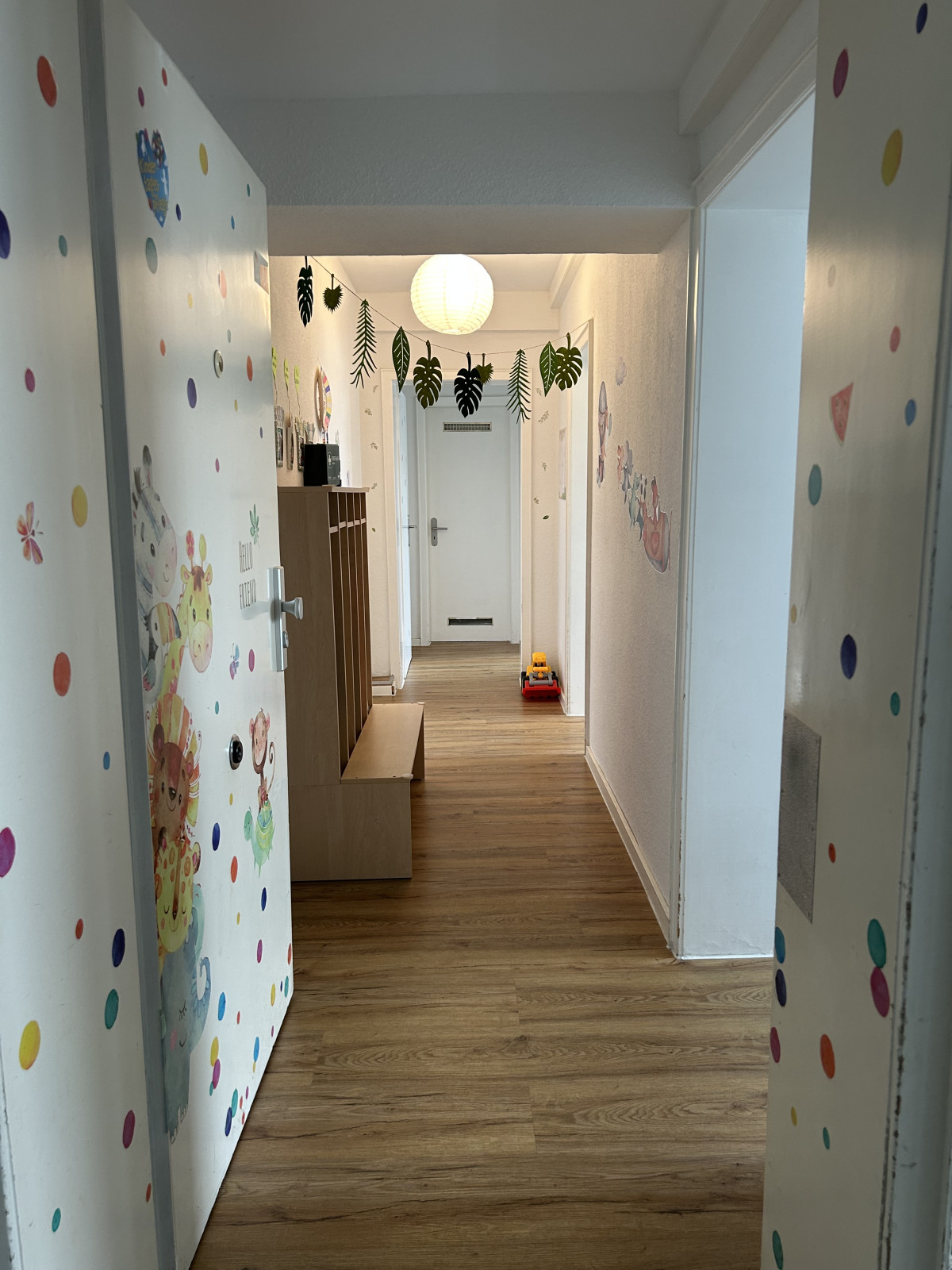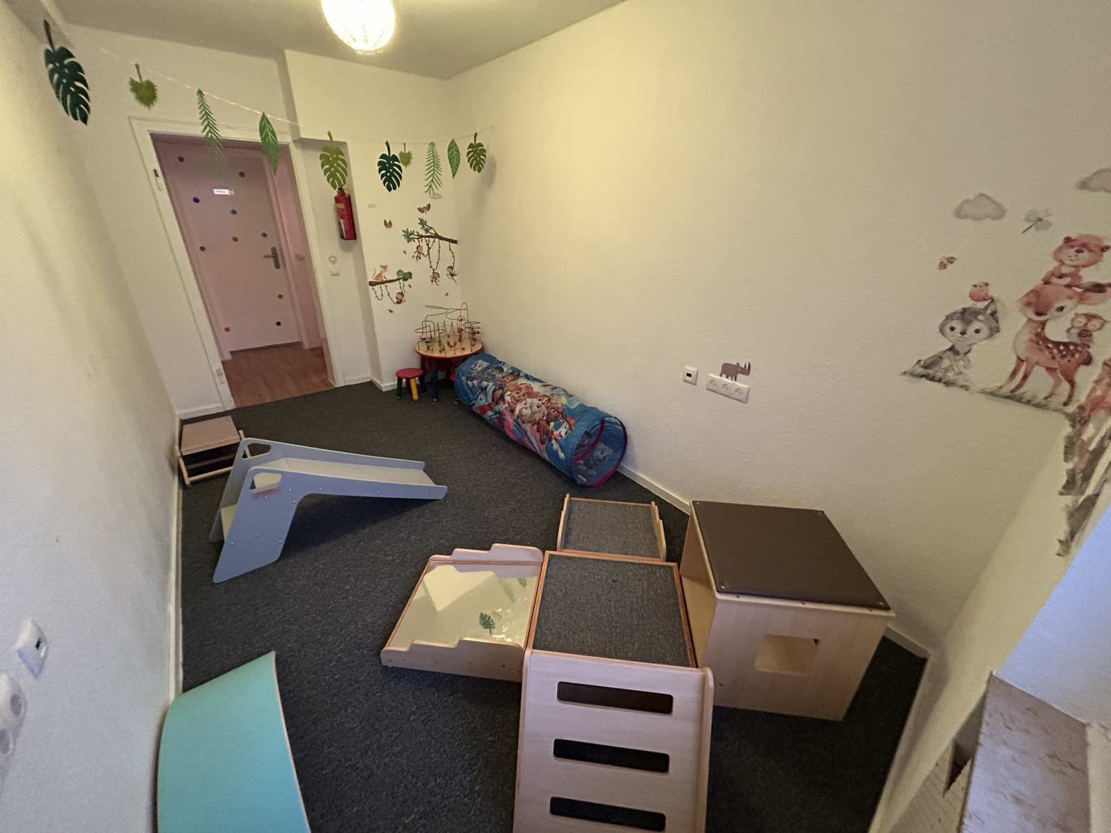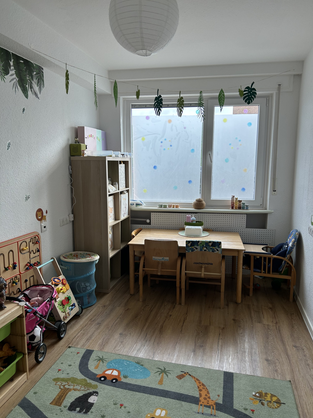 Die Räume meiner Kindertagespflege bieten den Kindern viel Platz zum Toben, Spielen und Schlafen. Es stehen 3 liebevoll eingerichtete Räume mit einer Fläche von insgesamt 60 Quadratmetern für vielfältige Entdeckungen bereit. Die Kindertagespflege findet in angemieteten Räumen statt. Die Einrichtung ist modern und mit der kindgerechten Ausstattung fühlen wir uns hier jeden Tag wohl. Sicherheit ist beim Spielen wichtig und so sind die Räume mit verschiedenen Features ausgestattet, die unbekümmertes Spielen ermöglichen.